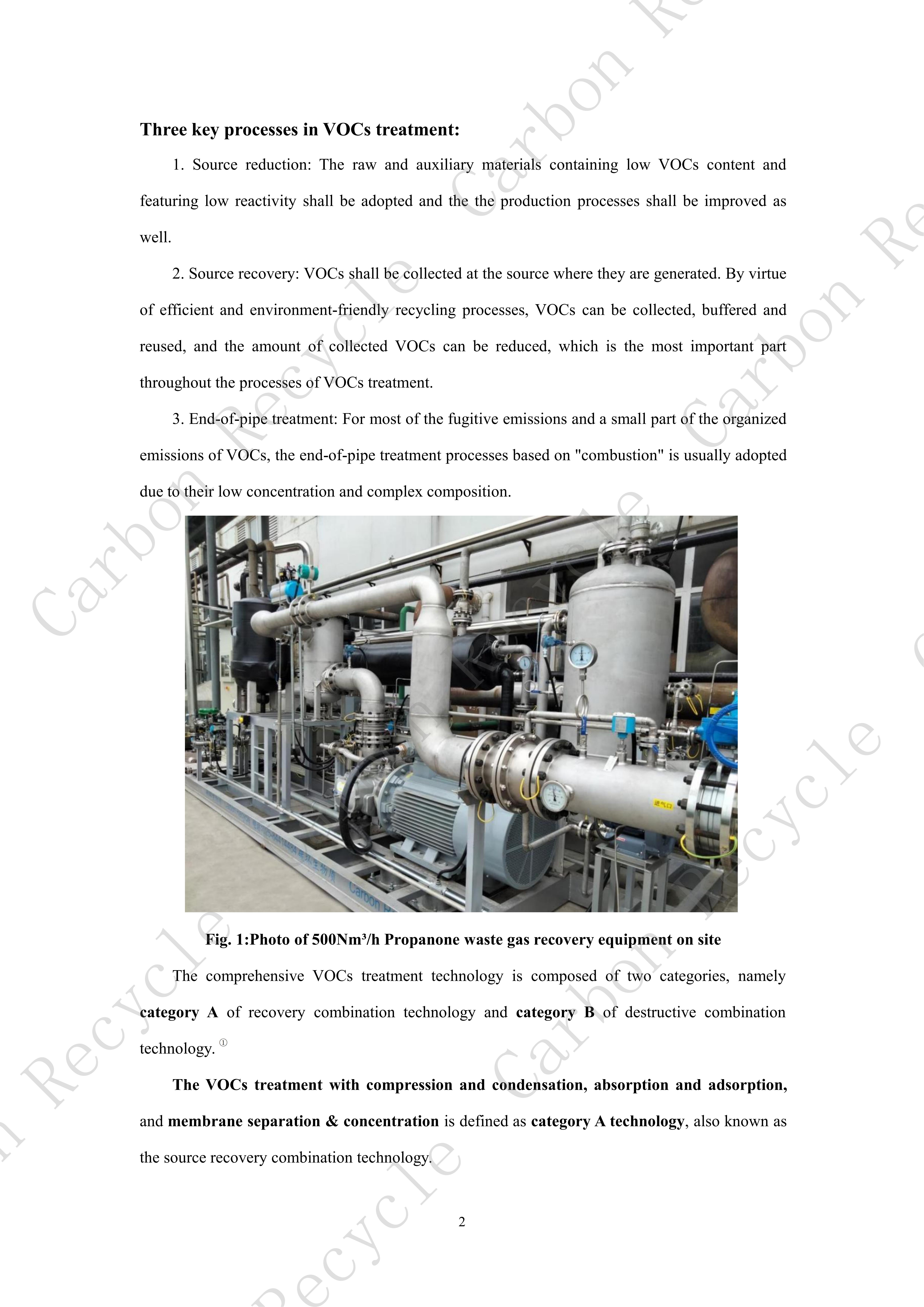 3. End-of-pipe treatment: For most of the fugitive emissions and a small part of the organized emissions of VOCs, the end-of-pipe treatment processes based on "combustion" is usually adopted due to their low concentration and complex composition.