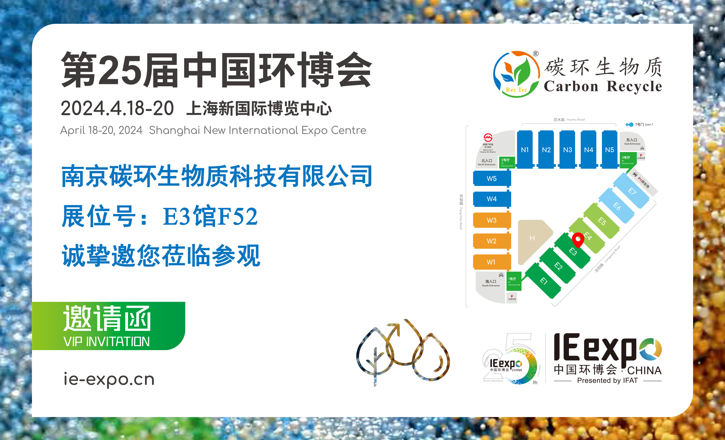 南京碳環(huán)生物質(zhì)科技有限公司將于2024年4月18-20日在上海新國(guó)際博覽中心參加IE expo China 2024第25屆中國(guó)環(huán)博會(huì),誠(chéng)摯邀請(qǐng)您蒞臨參觀。